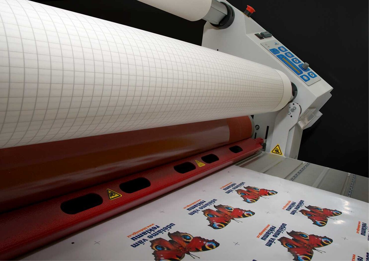 Laminací chráníme povrch ofsetových tiskovin např. složek před poškrábáním nebo otisky prstů, ale také náš velkoplošný, velkoformátový tisk na samolepkách před mechanickým poškozením a působením UV záření. Možnosti laminace jsou lesk nebo mat v maximální šíři 135 cm a délce max. 50 m.